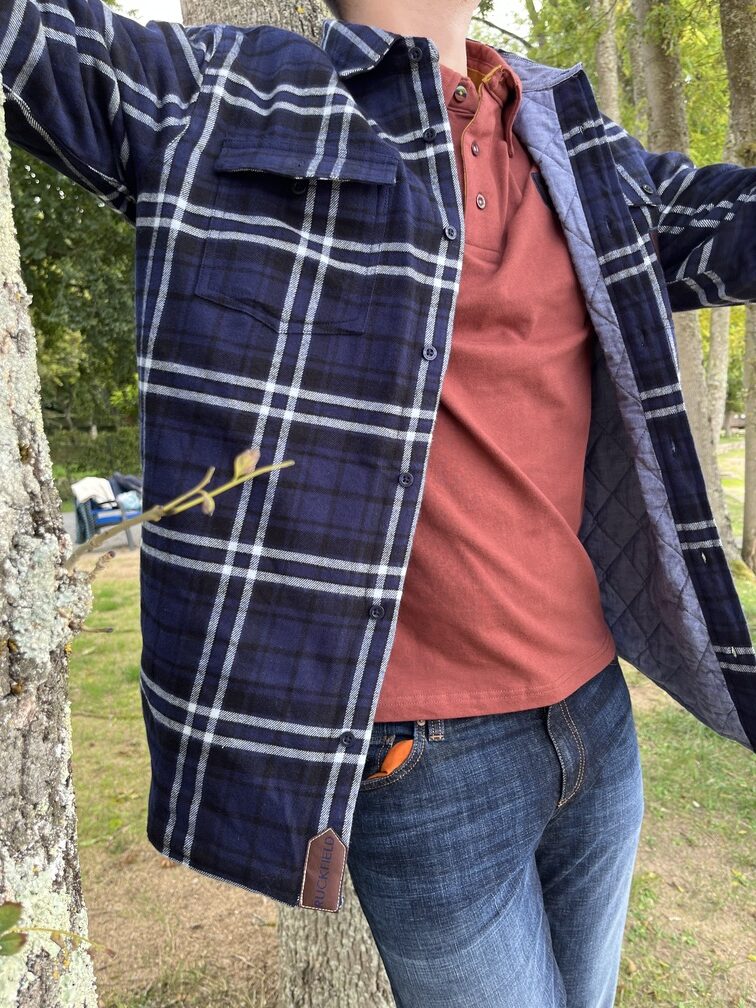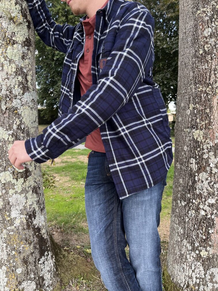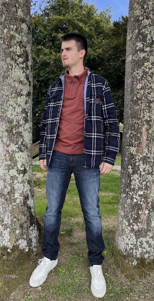 un look jeans pour cette tenue composée de la surchemise à carreaux légèrement matelassée, qui sera assurément la vedette de votre dressing messieurs, ici sur un polo couleur terracotta et un jeans délavé hyper stretch Alberto! Du confort et du confort au quotidien..